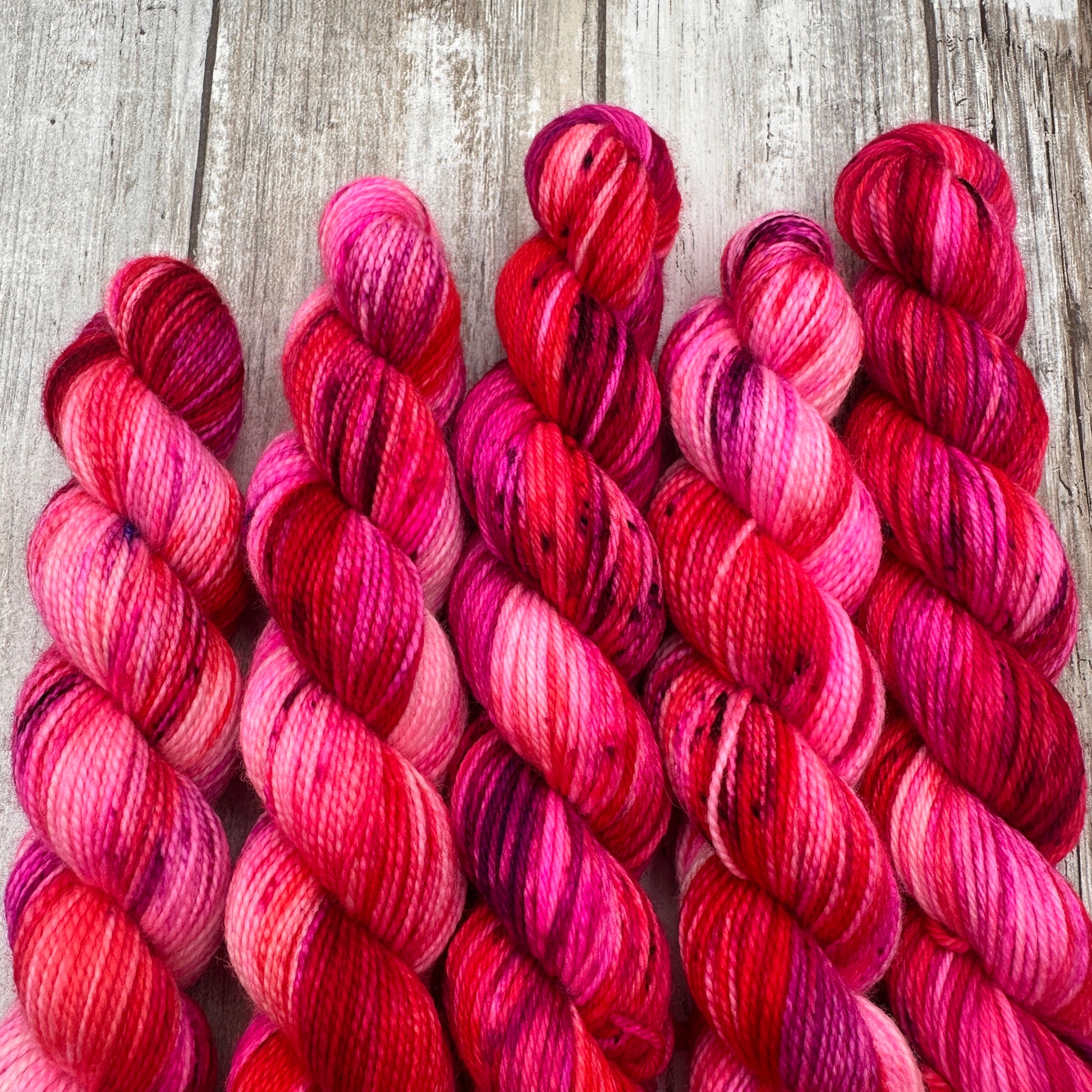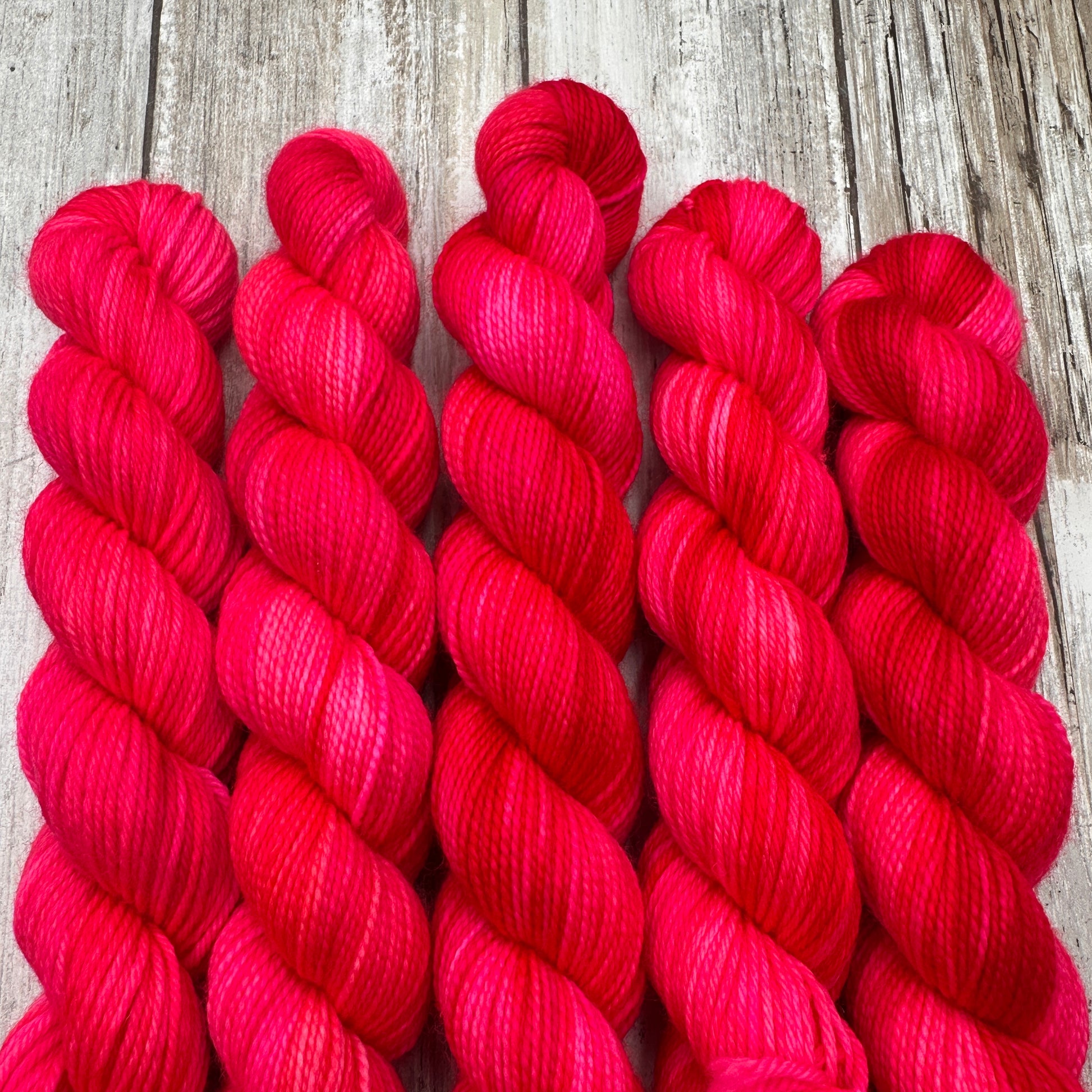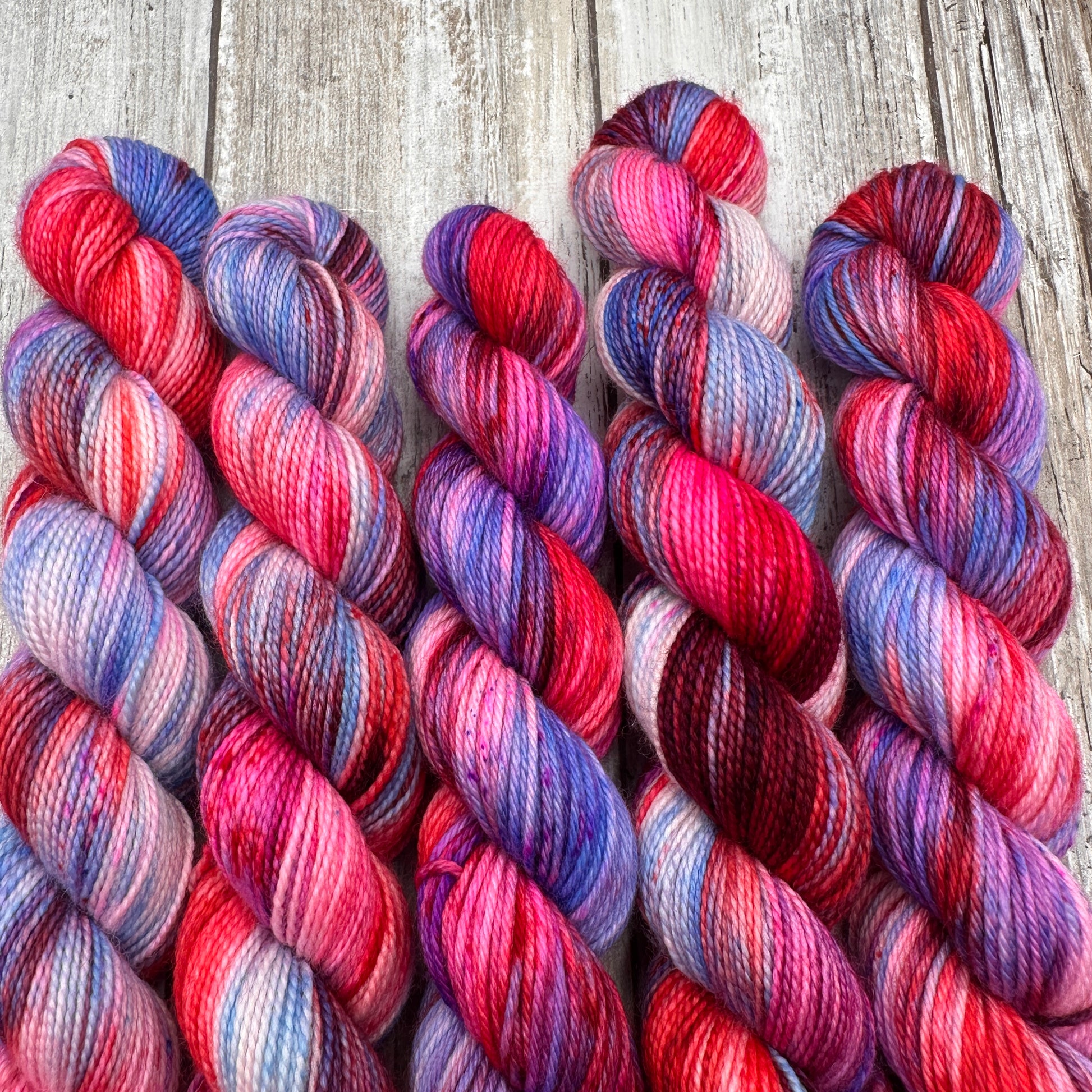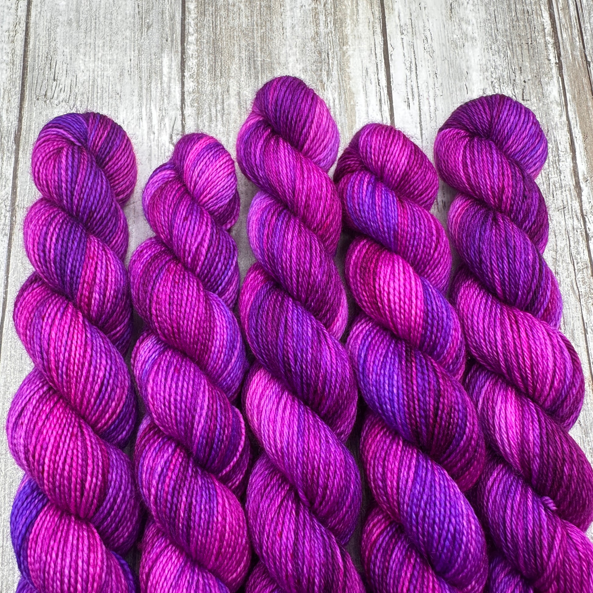 Hand dyed in a smoke free, pet friendly home. Due to being hand dyed in small batches, tones and/or speckling may vary slightly from skein to skein. The skein you receive may not be identical to the listing photo, but it will still match the color way.