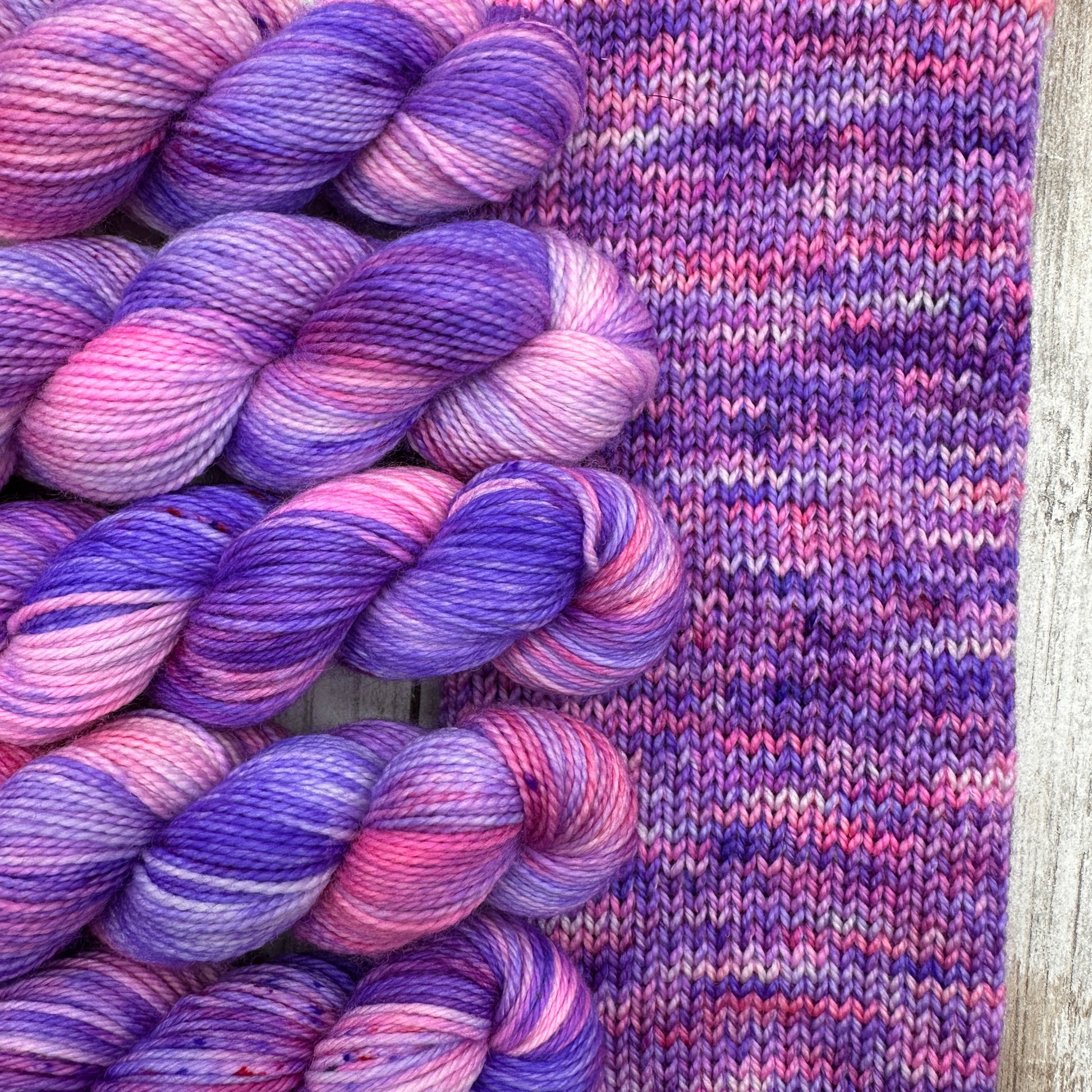 Hand dyed in a smoke free, pet friendly home. Due to being hand dyed in small batches, tones and/or speckling may vary slightly from skein to skein. The skein you receive may not be identical to the listing photo, but it will still match the color way.