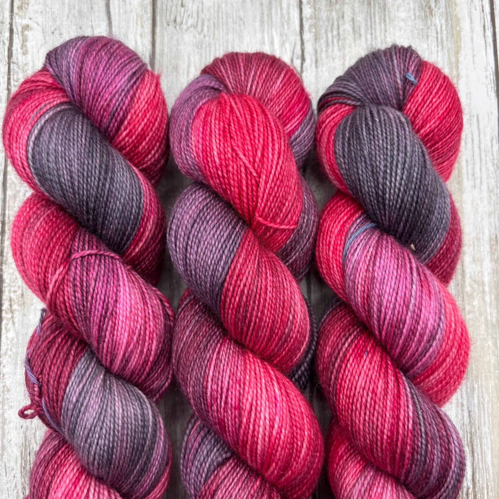 Hand dyed in a smoke free, pet friendly home. Due to being hand dyed in small batches, tones and/or speckling may vary slightly from skein to skein. The skein you receive may not be identical to the listing photo, but it will still match the color way.