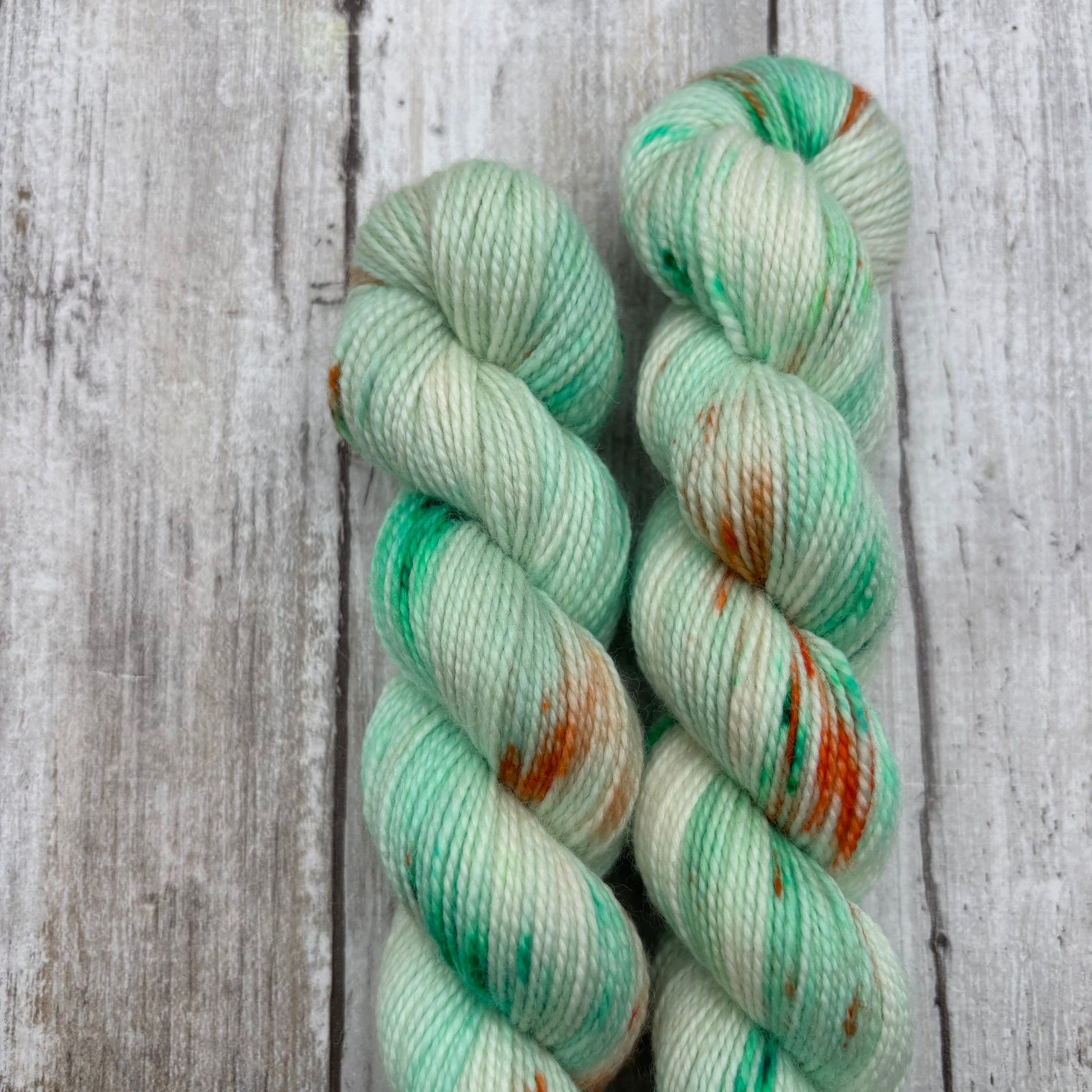 Hand dyed in a smoke free, pet friendly home. Due to being hand dyed in small batches, tones and/or speckling may vary slightly from skein to skein. The skein you receive may not be identical to the listing photo, but it will still match the color way.