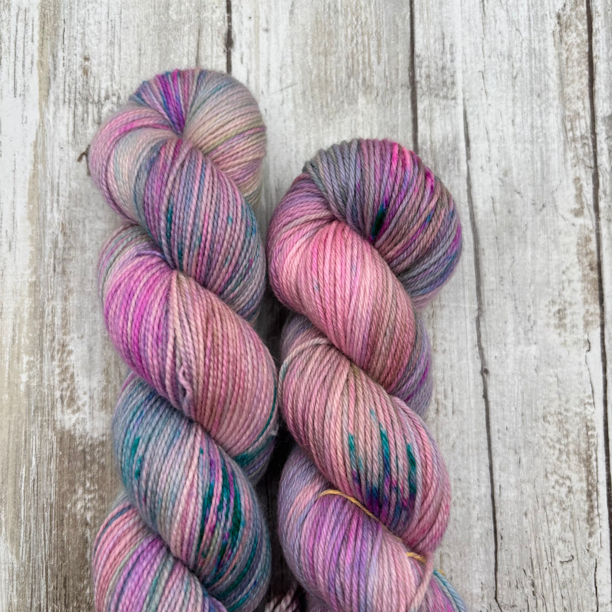 Hand dyed in a smoke free, pet friendly home. Due to being hand dyed in small batches, tones and/or speckling may vary slightly from skein to skein. The skein you receive may not be identical to the listing photo, but it will still match the color way.