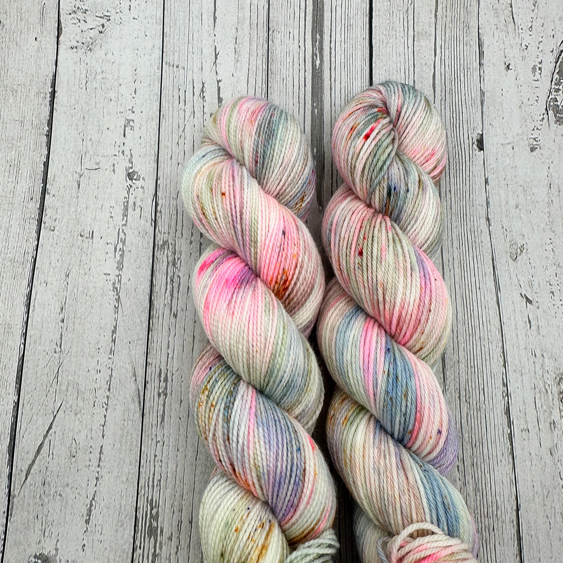 Hand dyed in a smoke free, pet friendly home. Due to being hand dyed in small batches, tones and/or speckling may vary slightly from skein to skein. The skein you receive may not be identical to the listing photo, but it will still match the color way.